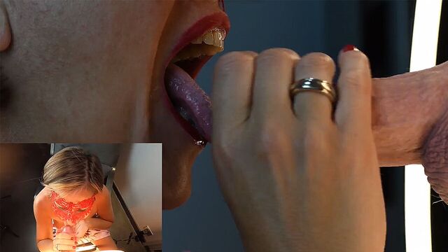 минет с высунутым языком